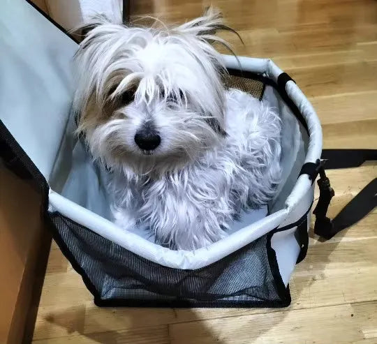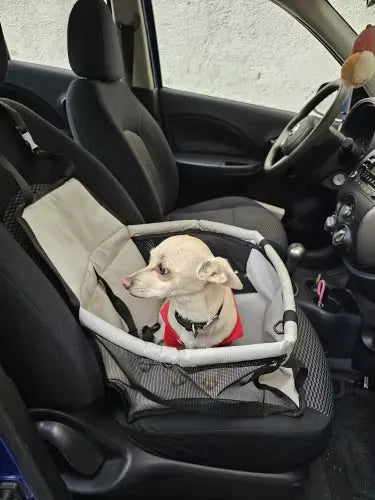 "OMG, luv this pet car seat! My lil pup stays super safe while I'm driving. No more jumping around and I feel so much more focused on the road. Easy to hook up and fold away. Can't imagine road trips without it now😊👍"